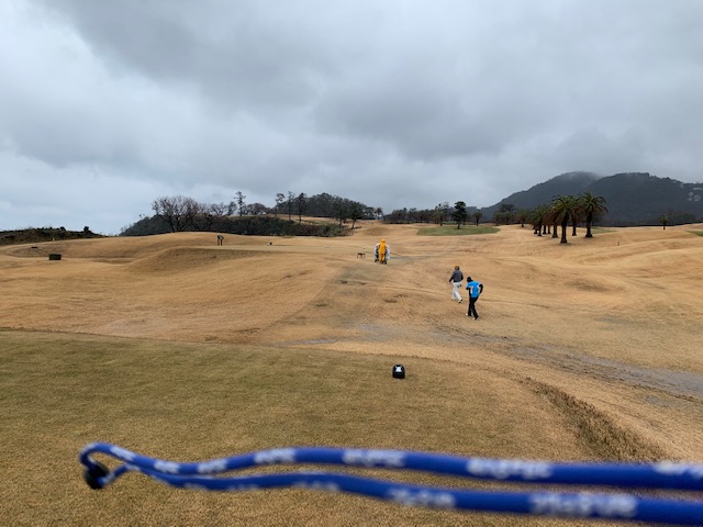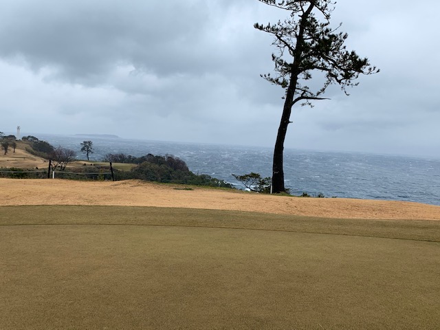 15番470yロングは、ドライバーは右ラフへ。6アイアンで斜め前方へ。8アイアンでの3打目は左のバンカーイン。ここから横長のグリーンに乗るには乗ったが、25mから3パンチでダボ。あまりに風が凄く、この16番は旗竿が折れてしまったようだ。で、この強風(旗竿のしなり具合)を撮影しようとしたが、風がもの凄く体が持っていかれそうになったので、撮影は止めた。