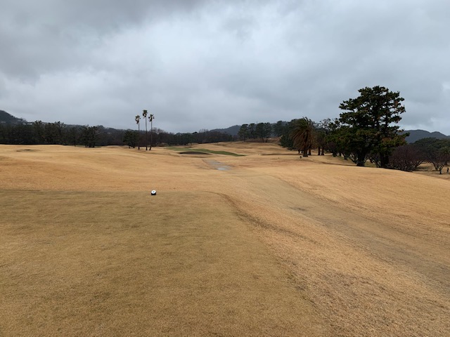 12番384y左ドッグのミドルは、ドライバーはまずまず。7アイアンで打つもショート。も、ナイス転がしでパー。