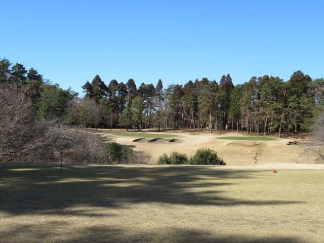 7番430yミドルは、ドライバーは右へ飛ぶ。木の根っこ。8アイアンで打つも、根っこに当たり高い球になる。3wで残り50yへ。寄らず入らずダボ。