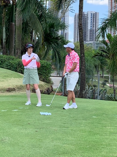 2番130mショートは、マンダリンホテルが真正面に立っている絵になるホール。9アイアンで打つも左のカラーへ。PWで転がすも寄らず。入らずボギー。素晴らしい1オンからテツさんがパー。