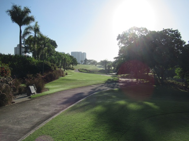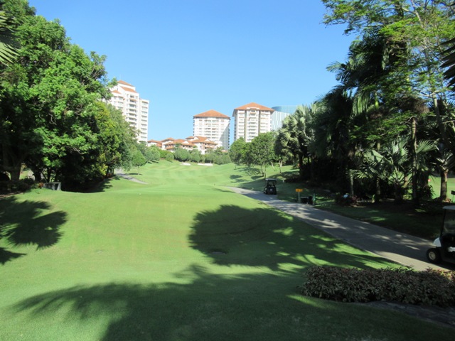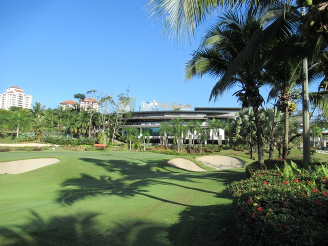 パームガーデンの感想・・・・短いが趣があるホールが続く。結構愉快なコース。このコースもビル群が聳え立っていて綺麗に感じる。食事はロイヤルセランゴールより断然美味しい。が、料金が高い。