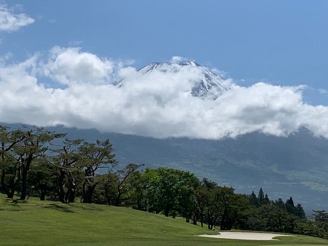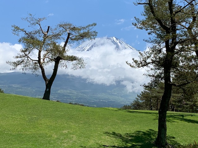 朝霧ジャンボリーの感想・・・・やっとプレーが叶いました。素晴らしい。全ホールから富士が見えるという。今日は朝は完璧でしたが、その後、雲に掛かり、あまりご尊顔を拝せませんでしたが、ちらっと見える様は最高でした。グリーンは芽が詰まっていて最高の状態でした。ラフもなかなかでした。フェアウエイだけがデコボコとしていて、何度かディボットに入りました。ここの松は変わっていて、ほとんどの松が二股や三股に分かれています。何とも言えない風情がある松です。で、高さが出ないようにある程度の高さになったら、上を綺麗に剪定するというのが慣わしかな?と感じるくらい、しっかり剪定されていました。とても広々としていて、そう難しいハザードがなく、良いスコアが出るコースと感じました。誰からも好かれるレイアウトです。また、裾野から丸々見える豪快な富士山を拝したいと思いました。想像していた通り、素晴らしいゴルフ場でした。行かれたことがない方はぜひ行かれてください。これぞ富士山!!を味わえると思います。