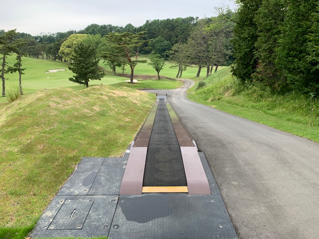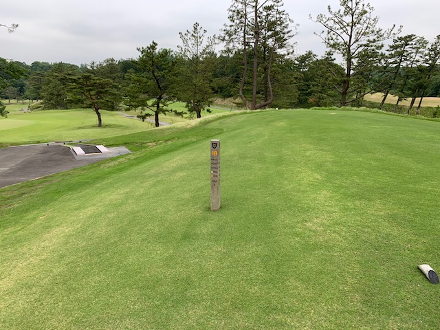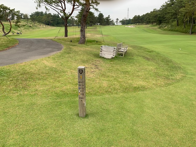で、パターを転がす時間もなく、西アウトからスタート。西アウトはパー35となります。ティはグリーンを使用します。