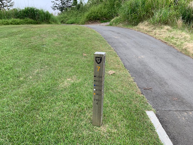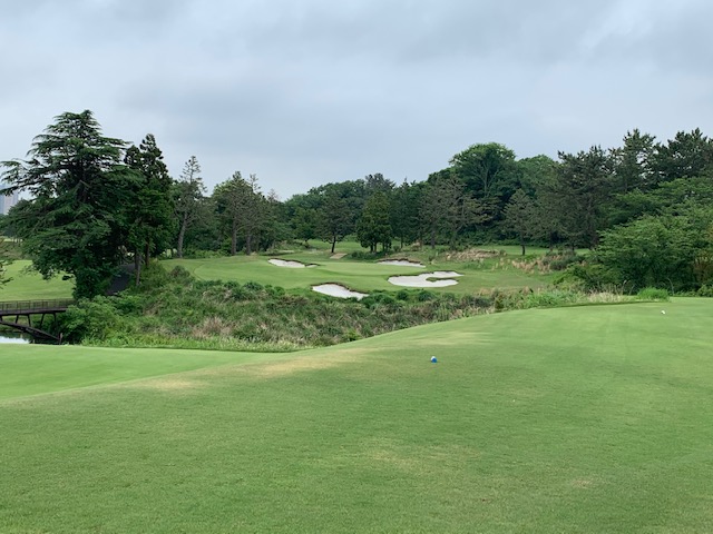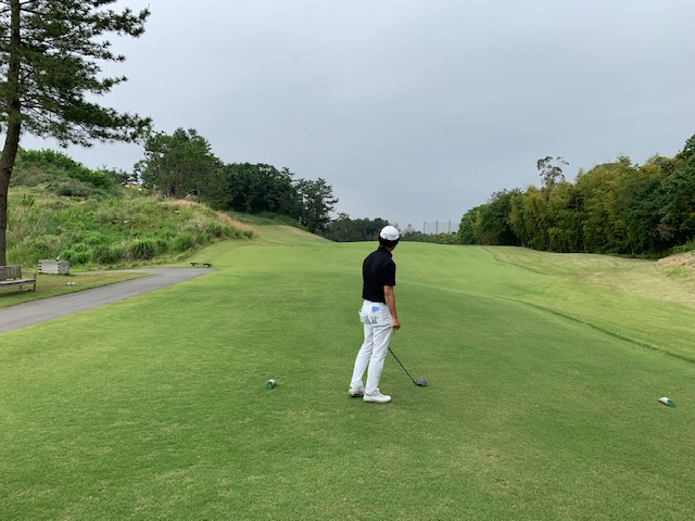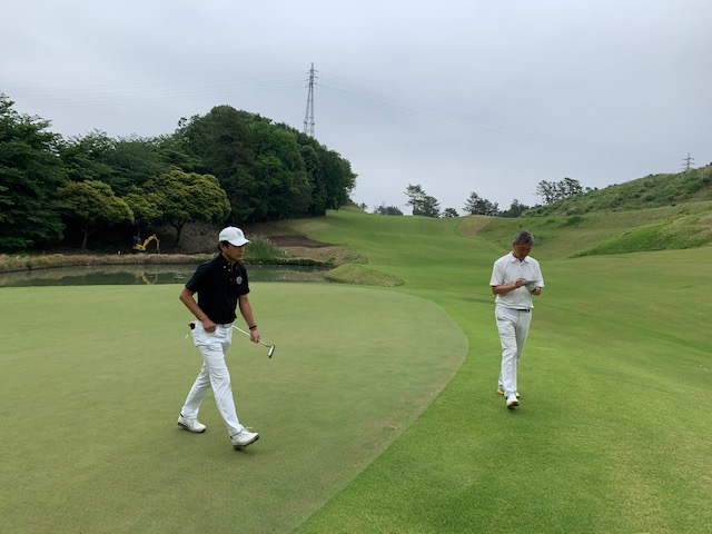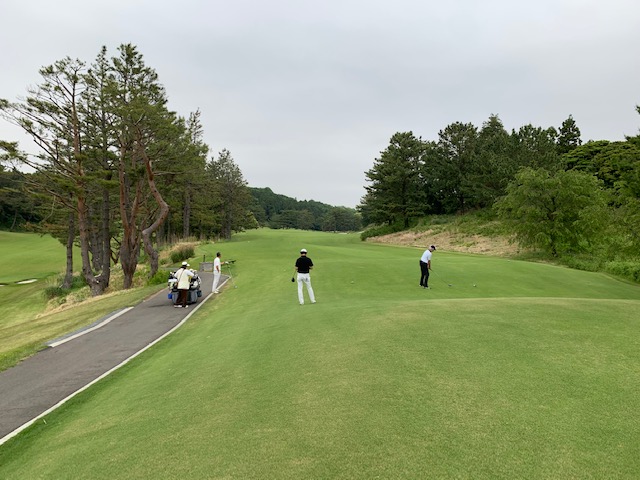 2番156yショートは、7アイアンでピン手前6mに1オン。難しいスライスラインを読み切り、バーディとなる。素直に嬉しい。2.3mに1オンのM.Cさんが残念パー。