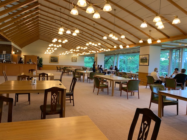 レストランに参りますと、東京都のK.Yさんが美女とご一緒しておられましたが、そこに割り込ませて頂き、ゴルフ談義に参加しました。私はいつものようにご飯二膳と味噌汁も二杯いただいてのおいしい和朝食をいただきながら、幸福な朝を満喫しました。