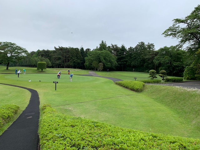 HPで拝見するに、風呂と朝のレストランはやっていないとのことで、近くのコンビニで諸々を買い込み、車の中で食し、受付します。その後、パターを転がして、インから。グリーン、昨日のところの半分くらいのスピードって感じ。