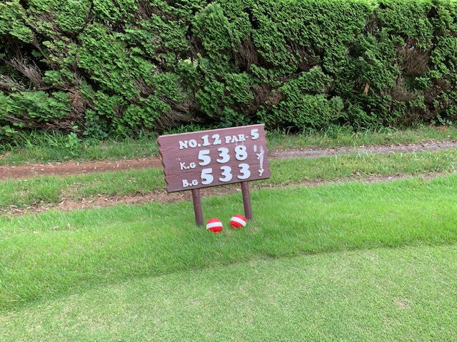 12番533yロングは、ドライバーはまずまず。3wもまずまず。52度で2.5mに3オン。が、チャンスを逃す。ナイス3オンからT.Mさんも無難にパー。
