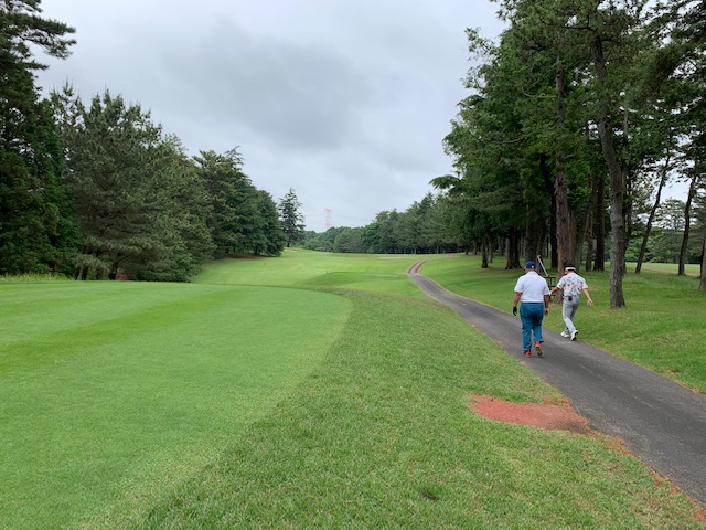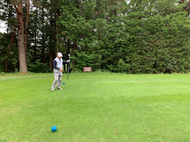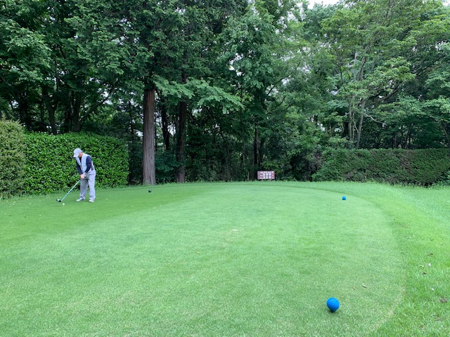 2番183yショートは、ジージー打法5アイアンでカラーへ。ナイスアプでパー。メルウェイもナイスアプからパー。メルウェイとS.Hさんから「器用だね~。ちょいと聞いてすぐできるんだ!」「はい、ただ、すぐに忘れるんですが、、、」大笑。