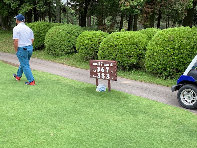 16番319yミドルは、3wでフェアウェイへ。9アイアンで打つも右のカラーへ。52度で転がしてパー。3mに2オンのS.Hさんが放り込んで連続バーディ。スゲー。負けじと2.5mをメルウェイも放り込んでナイスバーディ。ナイスアプでT.Mさんもパー。