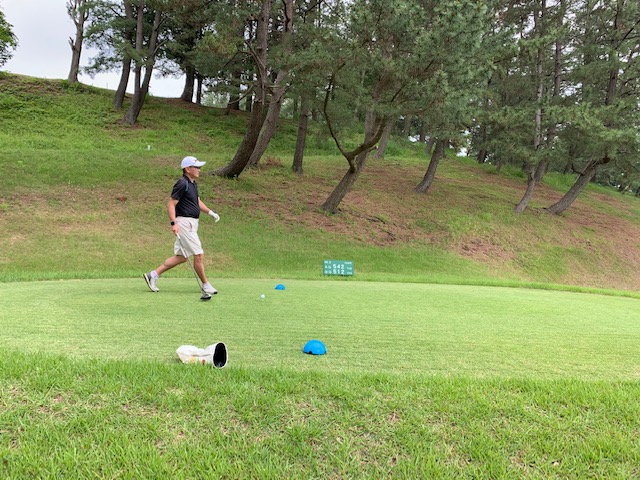 パター時間がなく、西アウトから。今日は短めのBグリーン使用でバックティから参ります。