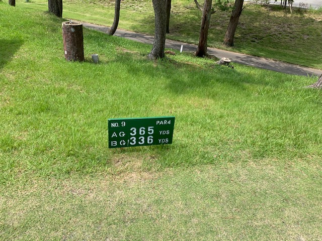 9番336yミドルは、ドライバーはまずまず。9アイアンでのセカンドは右へ。なんとか寄せてパー。