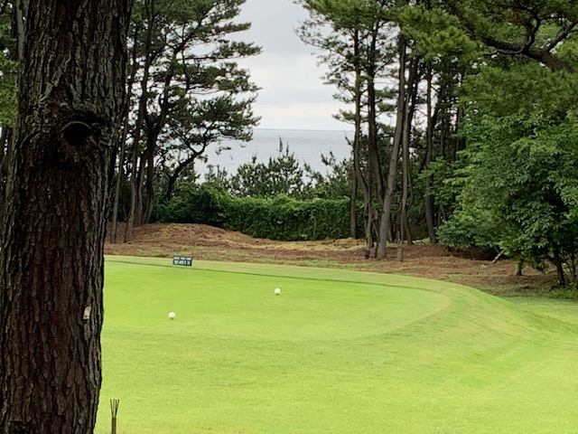 時間が掛かる掛かる。ここの2番、3番をスキップして4番からプレーし、後で戻るってのはどうですか?とキャディのTさんに聞いてもらったが、行くのは良いのですが、戻るのはちょっと。。。とのことで、断念する。ま、雨もたいしたことないので、今日はゆったりと大洗を堪能しましょう!と気を取り直す。