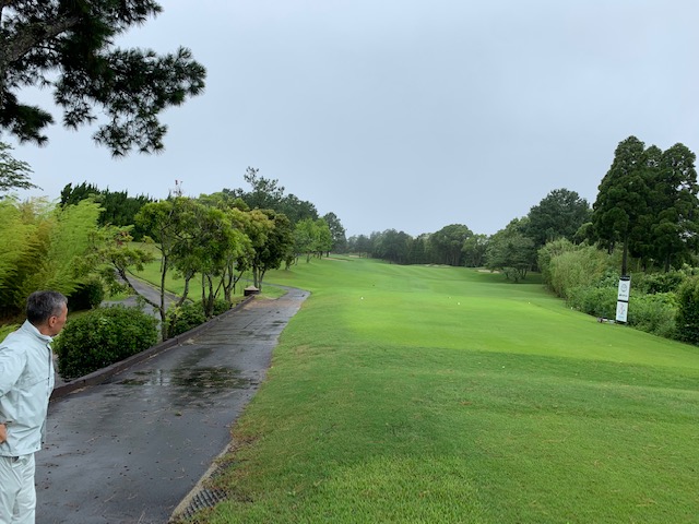 9番492yロングは、ドライバーはフェアウェイへ。この雨の中、ドライバーはまずまず良い。安全に25度のuで打つも引っ掛かる。あらま。木があり狙えない。PWでレイアップ。ボギー。