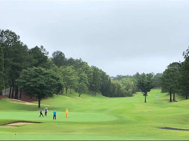 これだけ雨が降った中で6時間以上ゴルフをしていると雨も楽しい感じである。しかし、六国のグリーンは全くこの雨でも平気である。