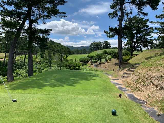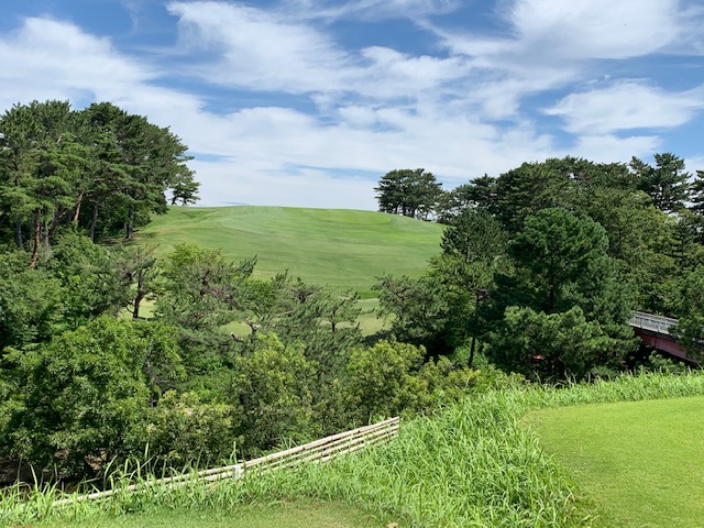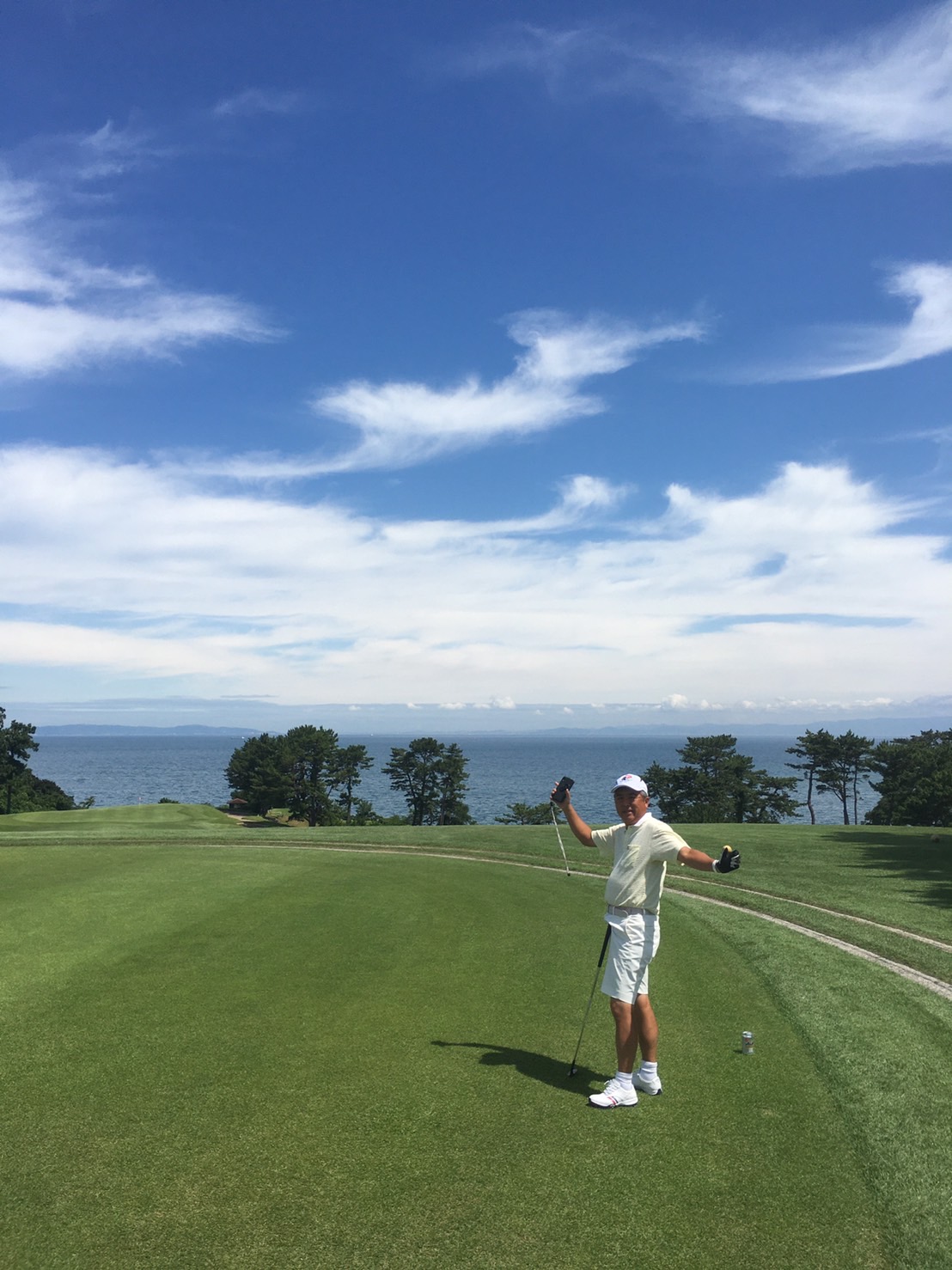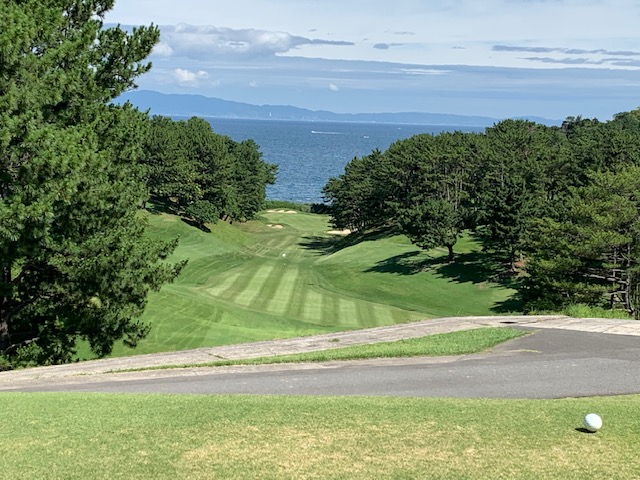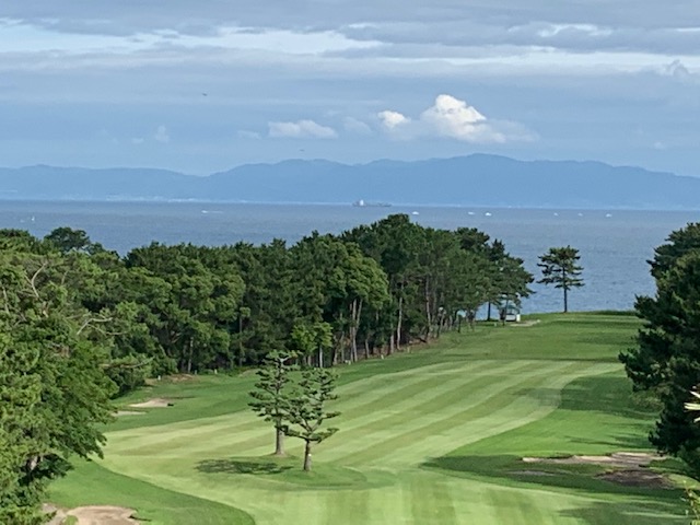 前日は大阪は京橋に泊まり、阪神高速使用で泉南郡は岬町にある大阪ゴルフクラブにやって来ました。ここは淡輪と呼ばれていますが、東の川奈、西の淡輪と呼ばれているほどのシーサイドコースですので、初めてプレーする私にはとても楽しみなコースなのであります。梅雨時だけに、とにかく、お天気だけが気がかりでしたが、オオー、流石は天照信吾の神、期待を裏切りません。大阪湾から淡路島がしっかり見えるではありませんか?