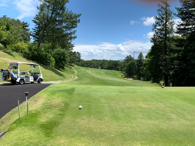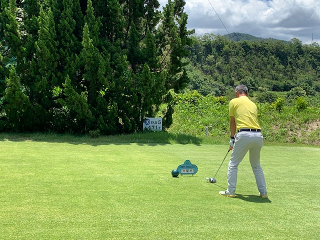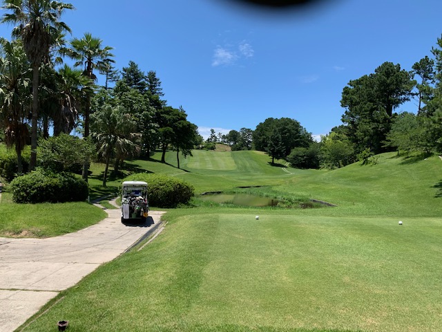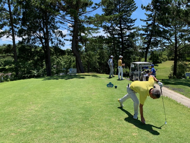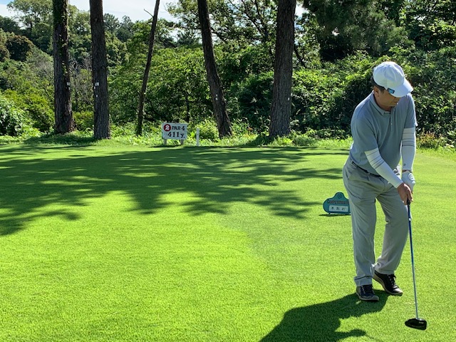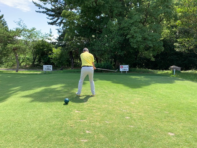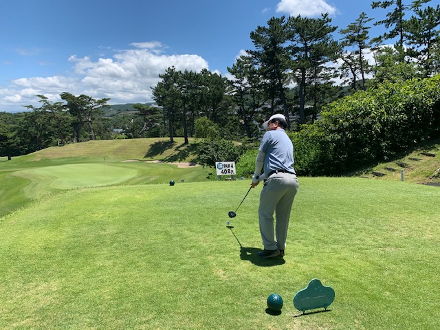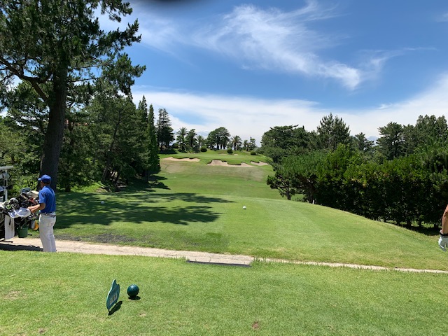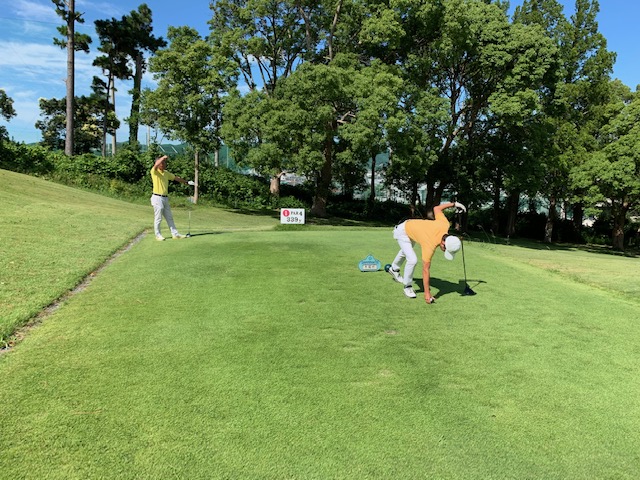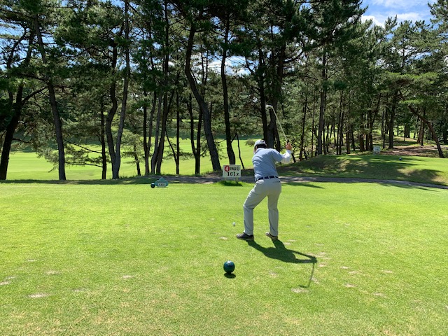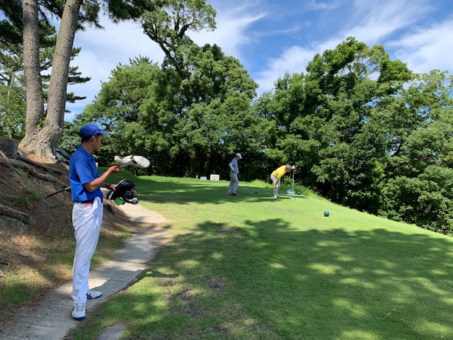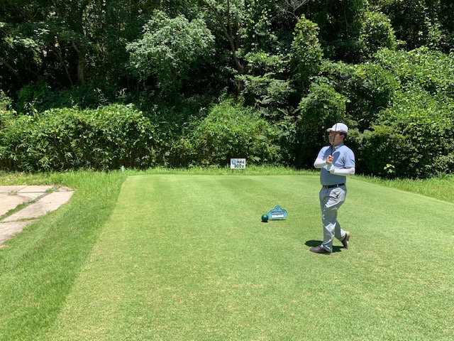 1番355yミドルは、ドライバーは右へ。深いラフからSちゃんが探してくれました。52度で脱出。ボギー発進です。しっかり2オンのS.MさんとJ.Oさんがともにパー発進。