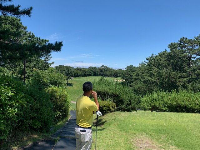 さ、絶好のお天気の中、淡輪を堪能しましょう。今日のキャディは若い男性キャディのSちゃんです。