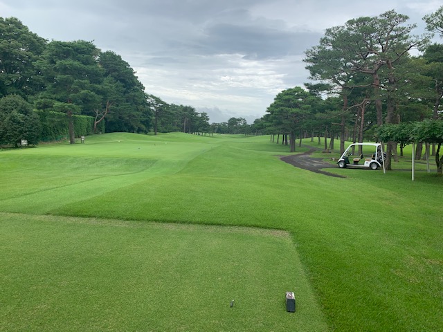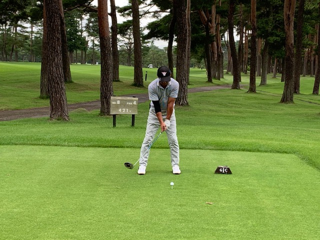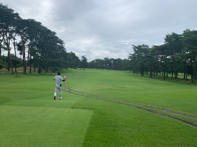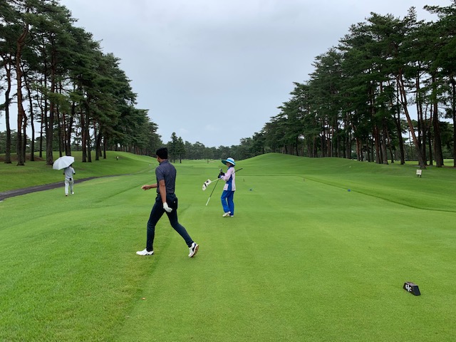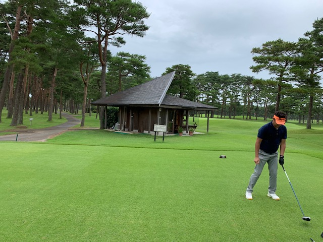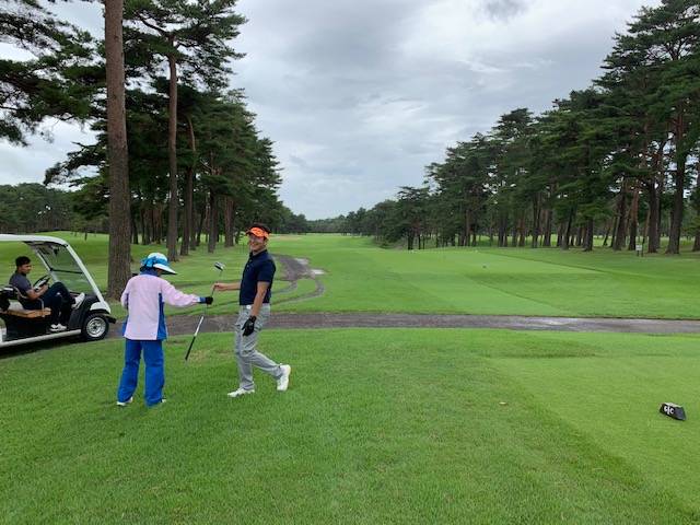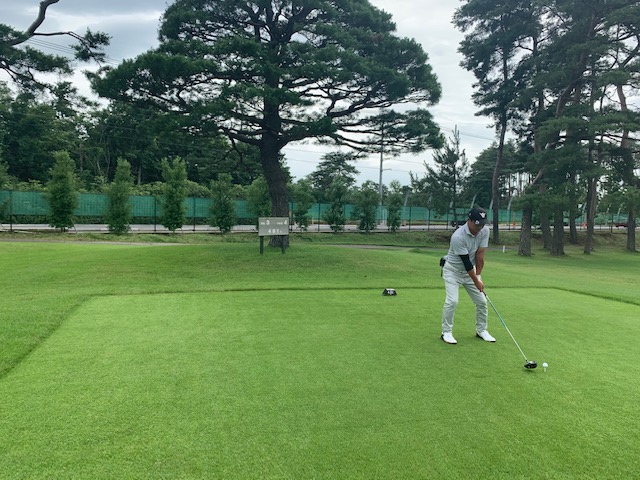 さて、話し込んでいますと、すぐに時間になりました。パターもせず、アウト1番から。今日は縁の埼玉県のK.Tさんもご同伴下さいます。で、黒ティでとなりました。