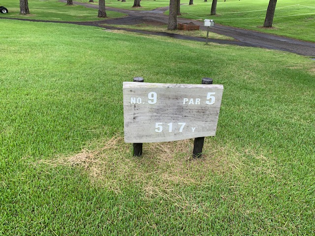 9番517yロングは、ドライバーはまずまず。3wで残り80yへ。52度で奥7mに3オン。無難にパー。