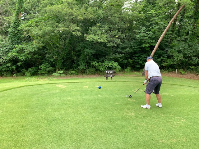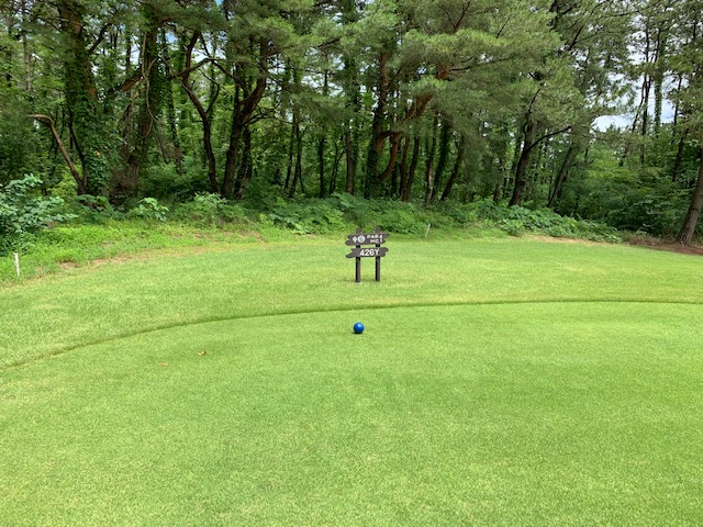 7番202yショートは、3uで手前のカラーへ。パターで無難にパー。素晴らしいアプからT.Tさんがパー奪取。