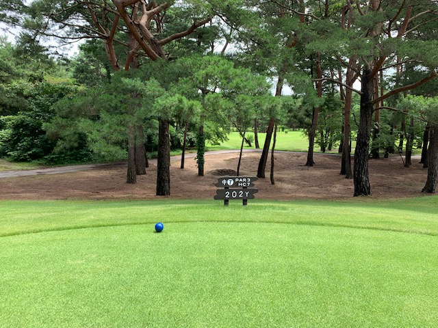 3番185yショートは、5アイアンで打つもバンカーイン。寄らず入らず。素晴らしいティショットでT.TさんとN.Iさんがともにナイス1オン。楽々パー奪取。