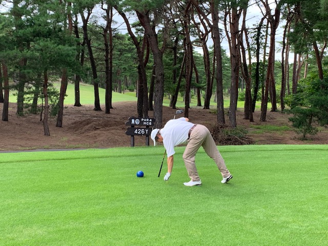 2番405yミドルは、ドライバーはまずまず。5アイアンでのセカンドは竜巻球。バンカーインで木がある。まるで大洗みたいなバンカーである。58度での低い球で1.3mに。沈めてナイスパー。スゲー素晴らしい3打目でした。