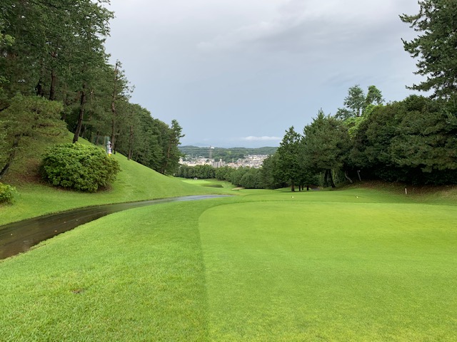 9番475yロングは、ドライバーは左の傾斜地へ。6アイアンでのフックで残り100yへ。52度で2mに3オン。放り込んでバーディ奪取。