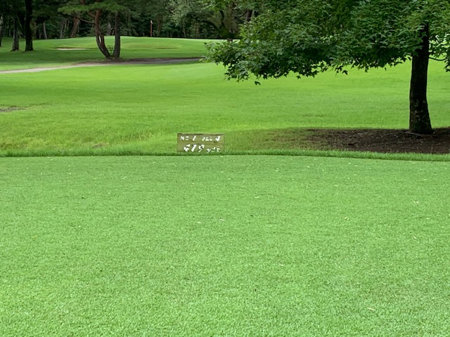 1番419yミドルは、ドライバーはまずまず。残り200yから3uで打つもちょいと足りず。簡単なアプが2.5mショート。入らずボギー。ラッキーながら1アップ。しかし、フェアウェイの芝が長いなー。普通のファーストカットより長いんでは?