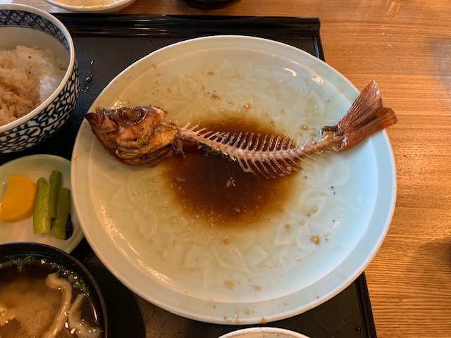 私はパスタアルデンテを食す。うん、なかなかグー。タケさんが煮魚定食を食されましたが、食べ方が綺麗!素晴らしい!タケ小山、恐るべし!