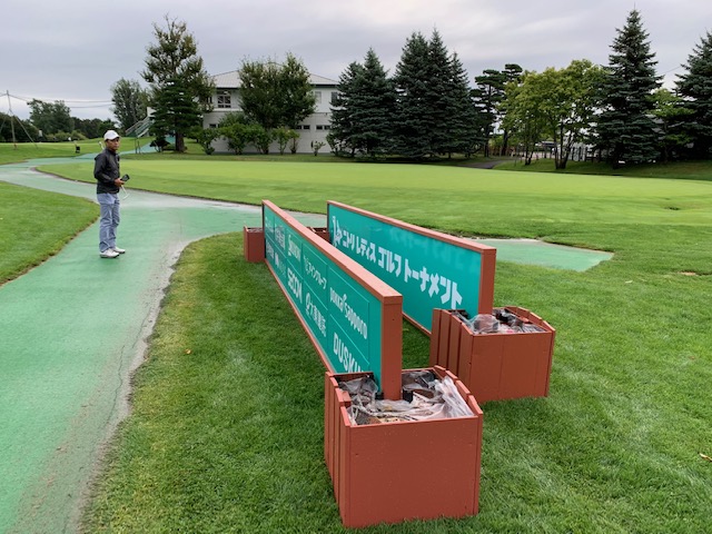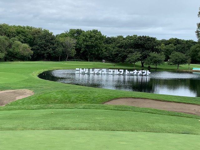 昨日までまさにニトリレディースの熱戦が繰り広げられていました会場です。そこで昨日のピン位置で楽しませてくださるという企画に参加しました。私は幸運ながら、幾度となくこのようなトーナメント翌日にプレーさせて頂いていますが、まさに、ありがたい企画です。このような企画に呼んでくださった縁の東京都のS.Mさんに感謝です。