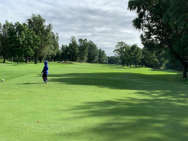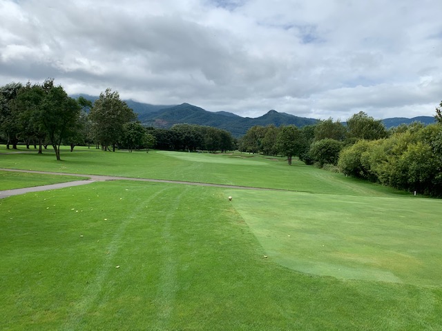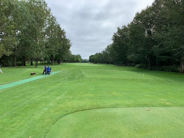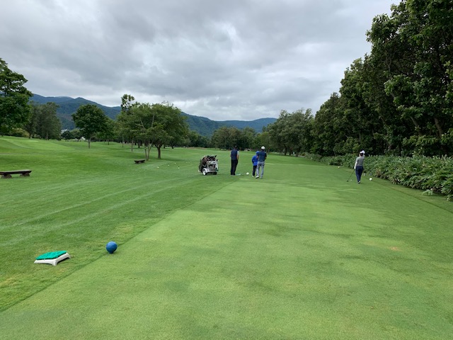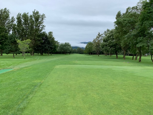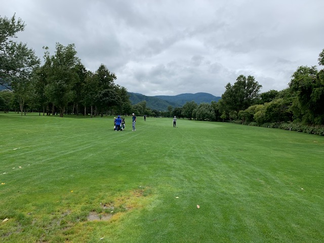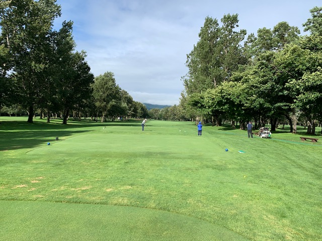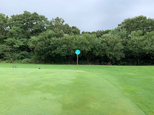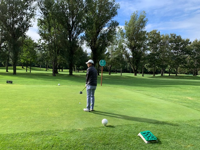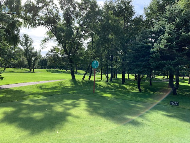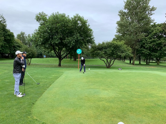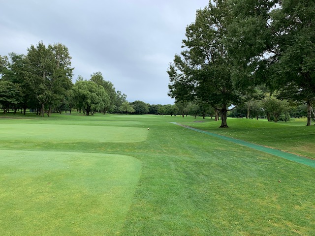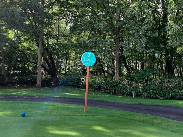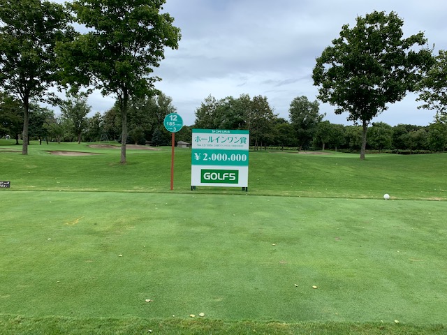 12番185yショートは、3uで打つも右へ。寄らず入らず。素晴らしいティショットで1オンのJ.Oさんが楽々連続のパー。