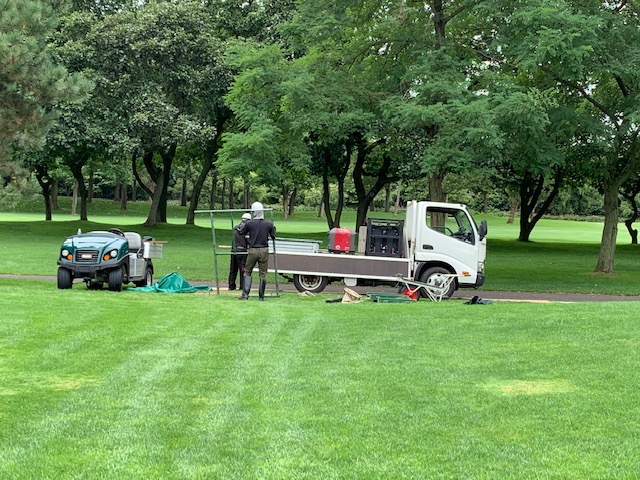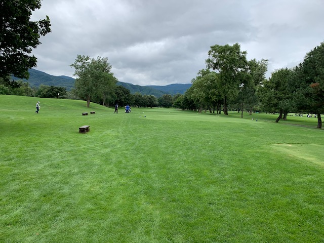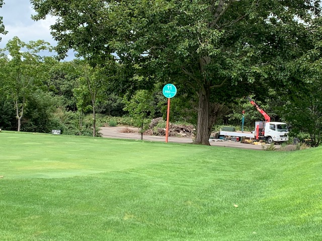 10番550yロングは、ドライバーは竜巻球。チョン出し。3打目が右のバンカーイン。出ず。出ただけ。6オンの7となる。ヒェー。素晴らしいショットで楽々3オンのS.Mさんが無難にパー。