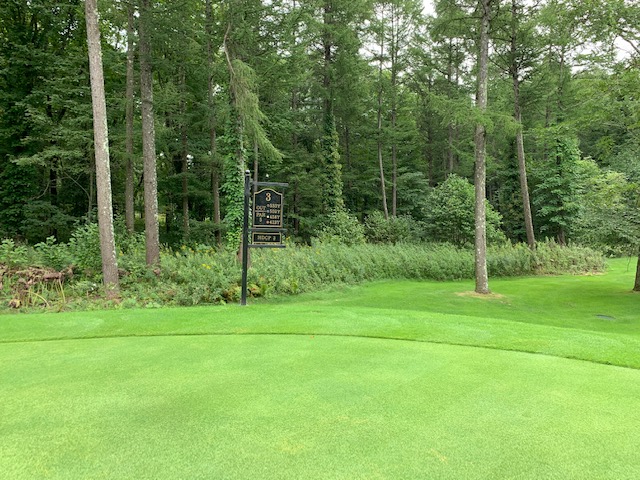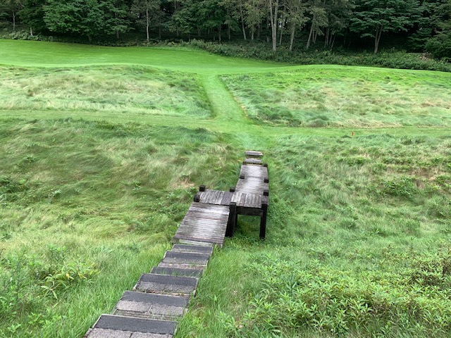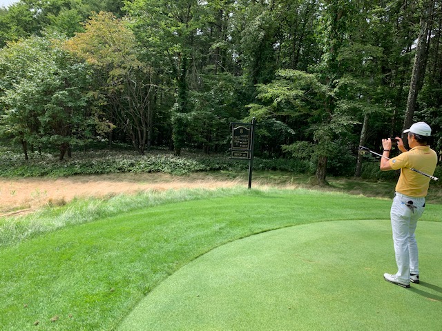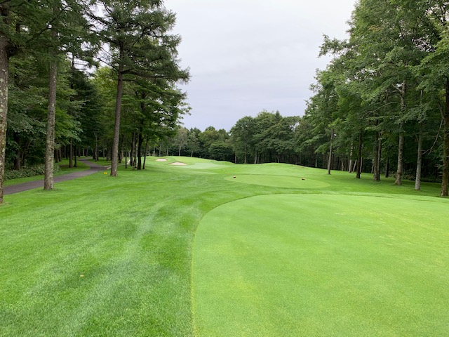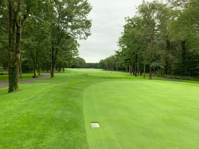 7番548yロングは、ドライバーは右へ飛ぶ。6アイアンで林の間を狙うもカーン。ショボを繰り返し、5オンのダボ。見事な3オンからN.Wさんが無難にパー。また、ナイスアプからJ.Oさんもパー奪取。