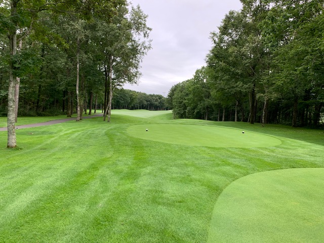 17番390yミドルは、ドライバーはナイス。6アイアンで打つもショート。寄らず入らず。素晴らしいアプからS.Mさんがパー。