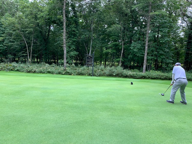 パターを転がして、今年は青ティで進行します。黒はダメでした。。。インから。
