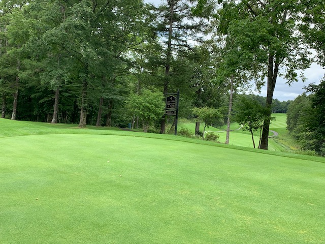 14番531yロングは、ドライバーは右へ飛ぶ。6アイアンで木の間を抜こうとしたがカーン。3w、56度で3mに4オン。入らずボギー。