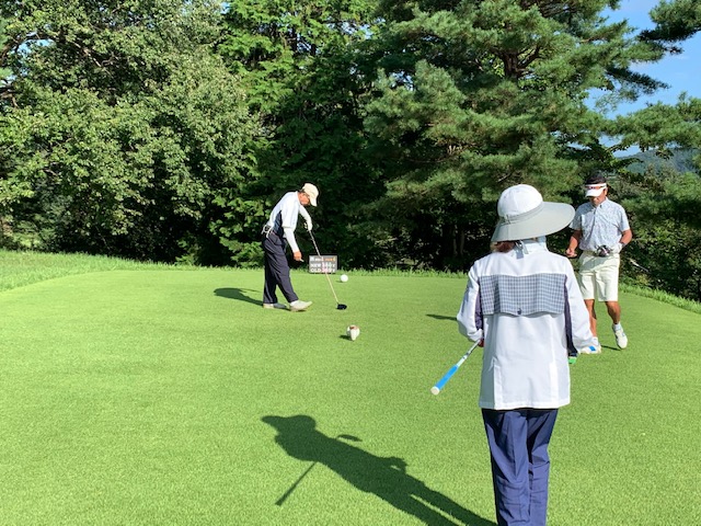 6番200y打ち下ろしショートは、5アイアンで打つもカラーへ。ショボイアプでボギーとする。見事な1オンからM.Nさんが無難にパー。