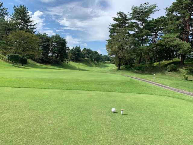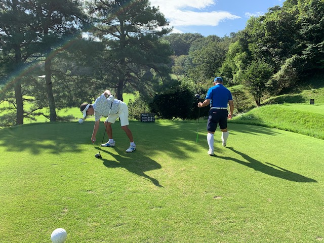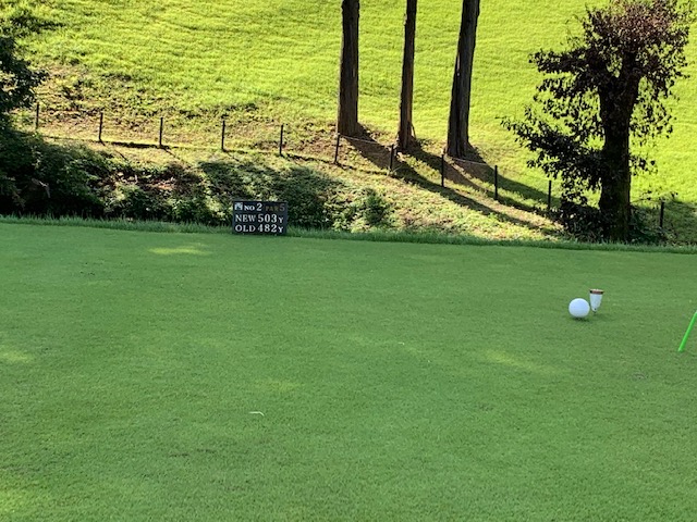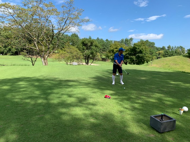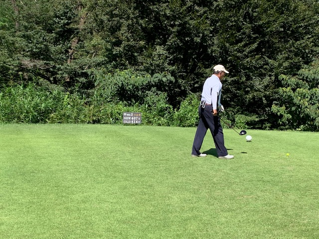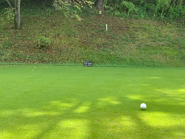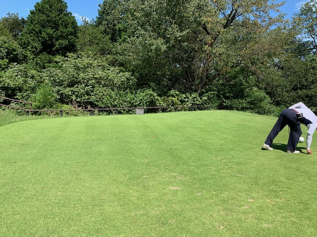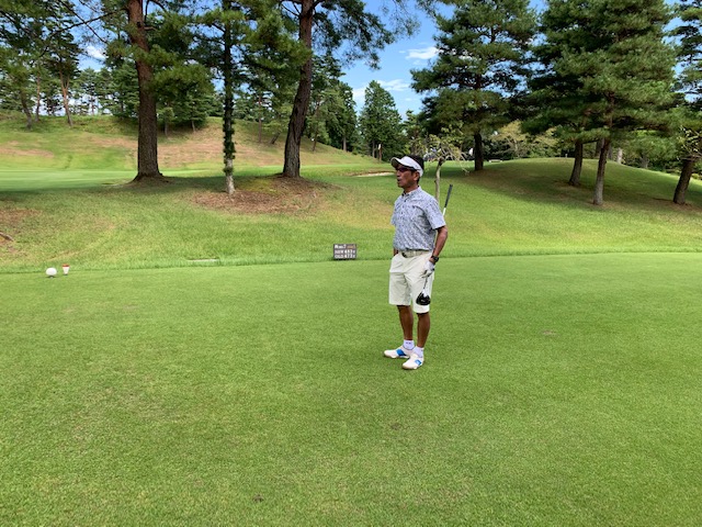 今日はもろもろ時間がなく、レストランには立ち寄れずでした。パターを少々転がし、西からです。今日は白ティです。グリーンはオールド使用です。