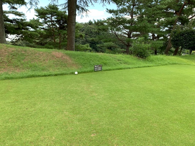 2番482yロングは、ドライバーは竜巻球。6アイアンで木の間を抜こうとしたが、カーン!バックしてしまう。8アイアンでチョン出し。残り140yを8アイアンで2mに4オン。沈めたかったが、入らず。ボギー。グリーン手前まで2打で持ってきたM.Nさんが30センチに3オン。OKバーディ!スゲー。