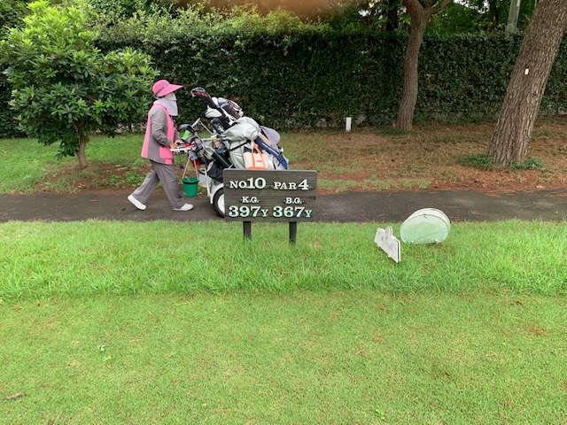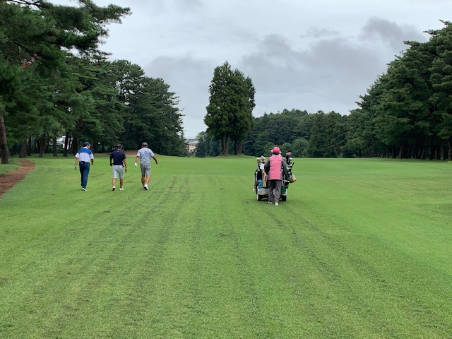 8番437yと金乃台では18番同様に難しいミドルは、ドライバーはヘナチョコ球。3wでのスライスで左ラフへ。なんとか3オン。ボギー。ミスが出たK.Fさんに追い着く。完全に泥仕合である(笑)。