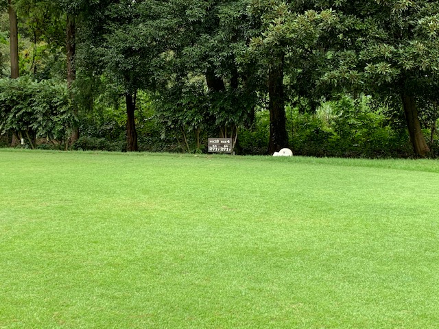 14番これまた左ドッグの341yミドルは、ドライバーはまずまず。9アイアンでのセカンドはバンカーイン。寄らず入らず。見事なアプからK.Fさんがパー。イーブンとなる。