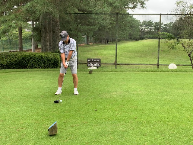 15番366yミドルは、ドライバーはまずまず。8アイアンでのセカンドは左へ。なんとか寄せてパー。同じくナイスアプからK.Fさんもパー。