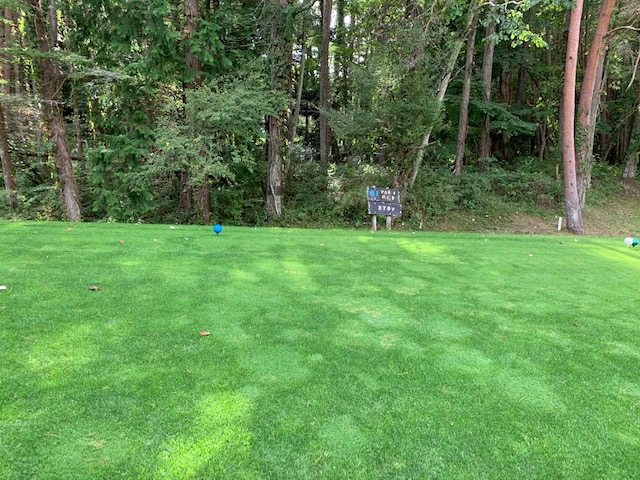 9番157yショートは、9アイアンで打つも左に外れる。寄らず入らず。しっかり1オンのA.Iさんが無難にパー。