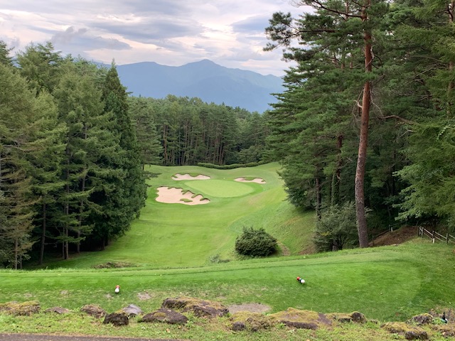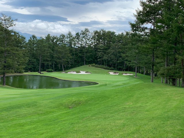8番365yティグランドからの眺めが素晴らしいミドルは、ドライバーはまずまず。PWで9mに2オン。無難にパー。同じく2オンのM.Tさんも無難にパー。