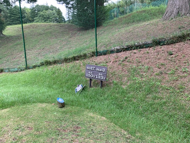 17番150yショートは、8アイアンで打つも竜巻球。寄らず入らず。