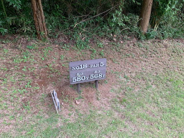 18番580y右ドッグのロングは、ドライバーはナイス。3uでのセカンドは右へ飛んで林入り口。ここからどミスを連発し、5オンのダボ。