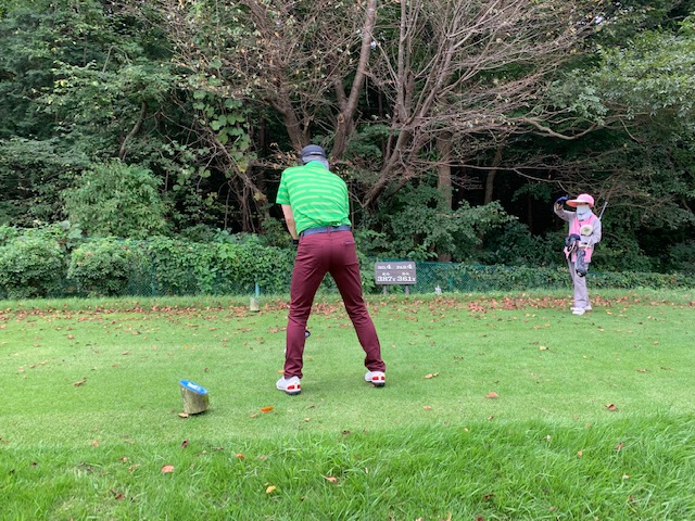 11番189yショートは、3uで打つも右へ。寄らず入らず。素晴らしいティショットで1オンを果たしたT.Oさんが無難にパー。