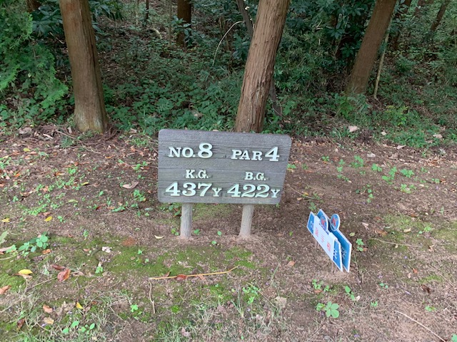 8番437yミドルは、ドライバーはナイスと思っていたが、。距離が足りておらず木に当たっていた。3u、52度で乗らず。ダボ。