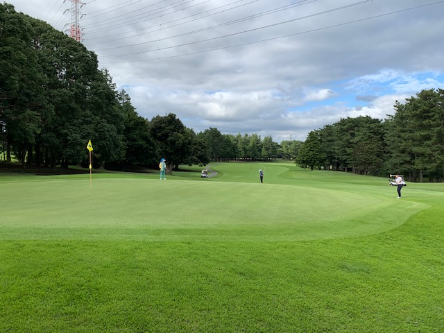 11番左ドッグの402yミドルは、ドライバーは左へ。チョン出し。ボギー。見事なパター力でM.Fさんがパー奪取。また、ナイスアプからY.Yさんもパー。