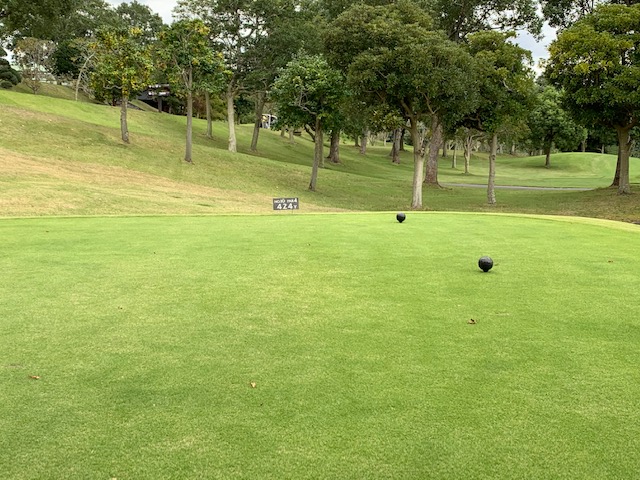 12番540yロングは、ドライバーは左ラフへ。すっぽりです。7アイアンでフェアウェイへ。残り206yを3wでナイスボール。グリーン脇から寄せてパー。パーを取るとホッとするわ。